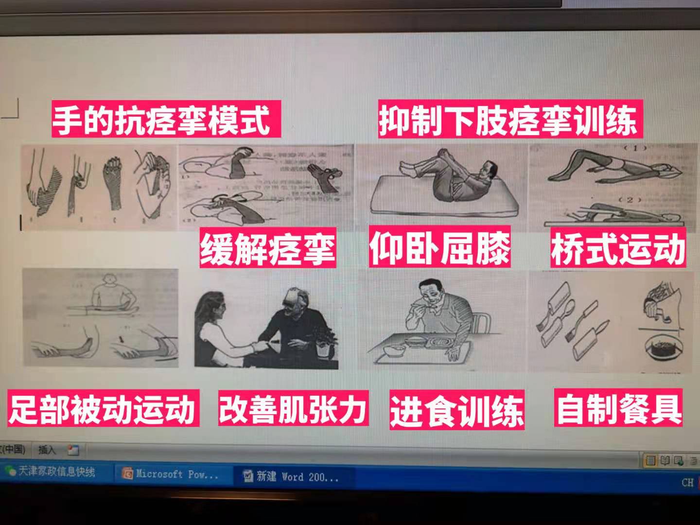 1、手的抗痉挛模式 2、缓解痉挛的手法 3、抑制下肢痉挛训练 4、仰卧屈膝5、桥式运动 6、足部被动运动 7、利用反射性机制改善异常的肌张力 8、使用自助具